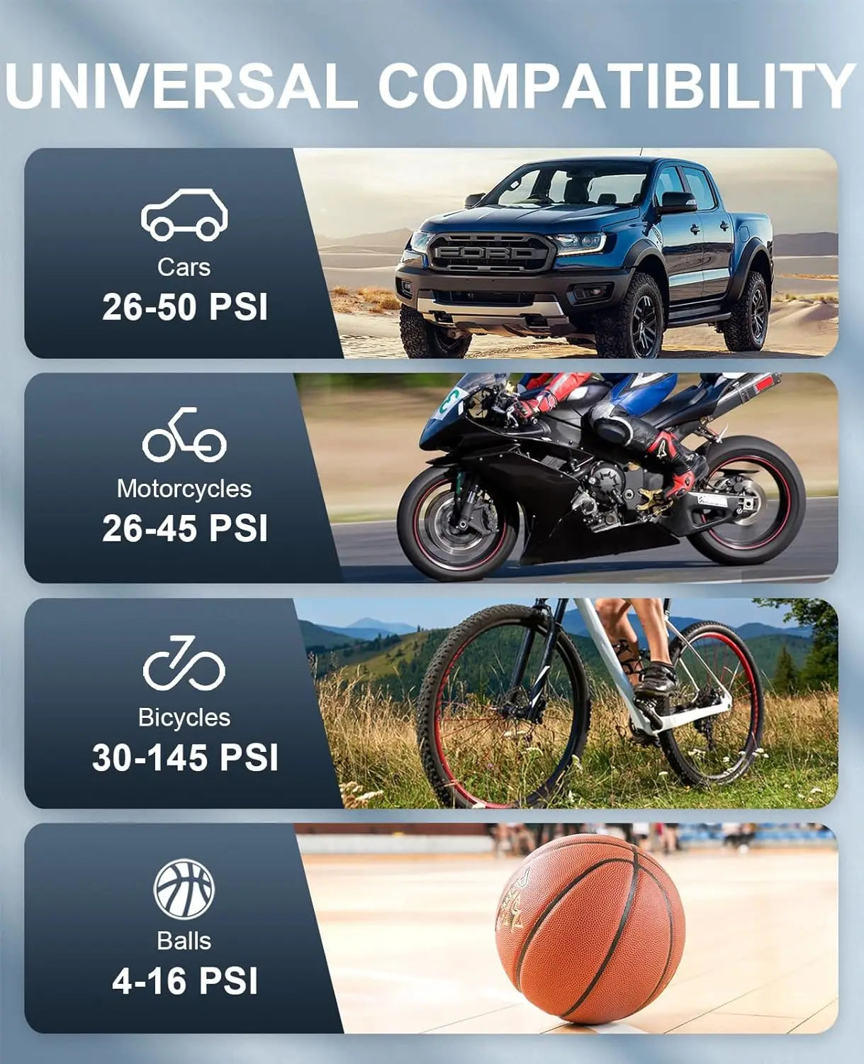 ✅ Versatile Use: Perfect for cars, motorcycles, bicycles, sports balls, and inflatables.